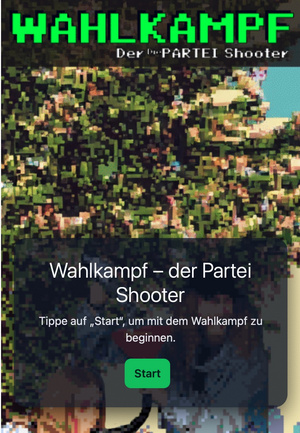 Wahlkampf ist Krieg und Krieg ist populär wie nie. Aus dem Die PARTEI Gamestudio™ kommt der Wahlkampfshooter für Frankfurt. Spiele mit Mehnersmoos…